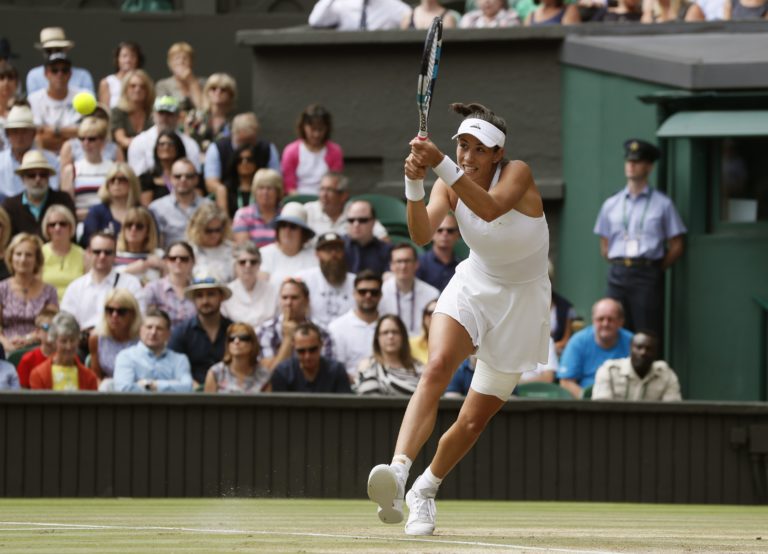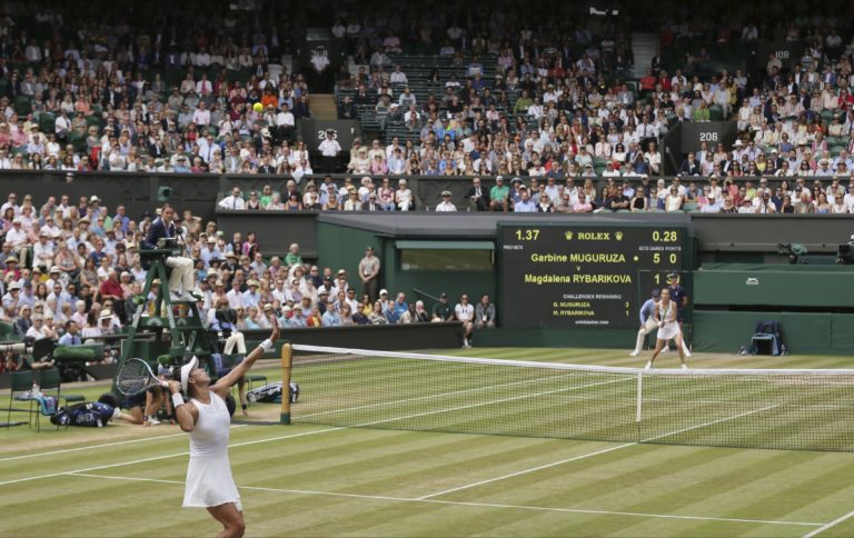 Semifinálový zápas Wimbledonu medzi slovenskou tenistkou Magdalénou Rybárikovou a Španielkou Garbine Muguruzovou-Blancovou. Londýn, 13. júl 2017. Foto: SITA/AP.