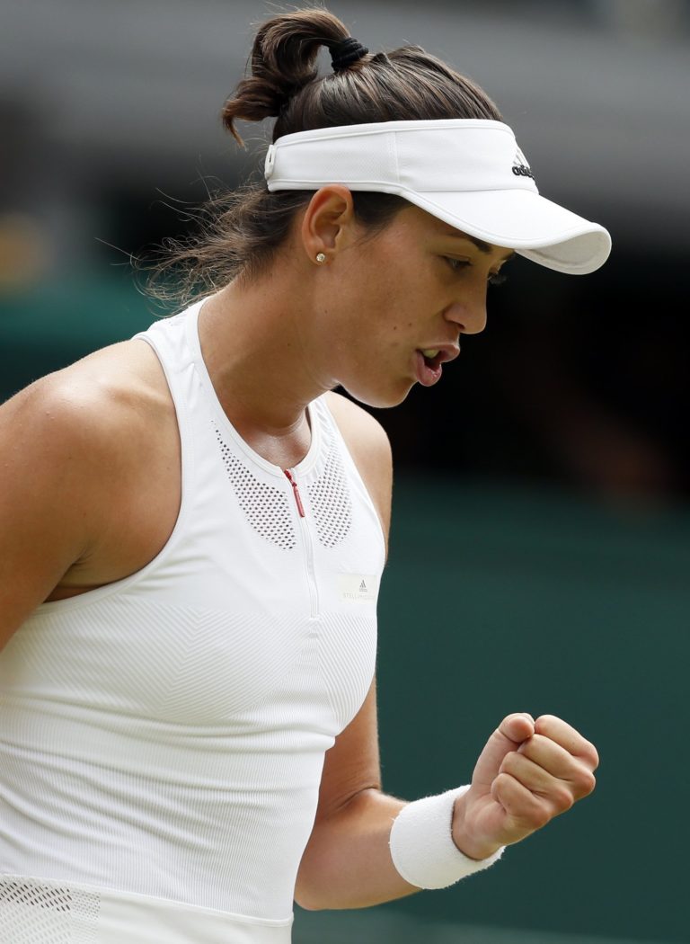 Spain's Garbine Muguruza celebrates after beating Slovakia's Magdalena Rybarikova in their Women's Singles semifinal match on day nine at the Wimbledon Tennis Championships in London Thursday, July 13, 2017. (AP Photo/Tim Ireland) Foto: SITA/AP.