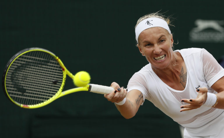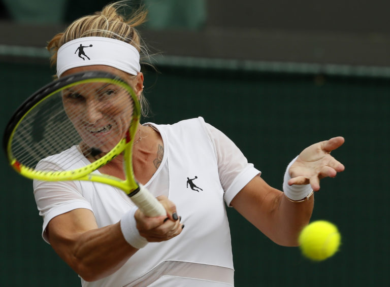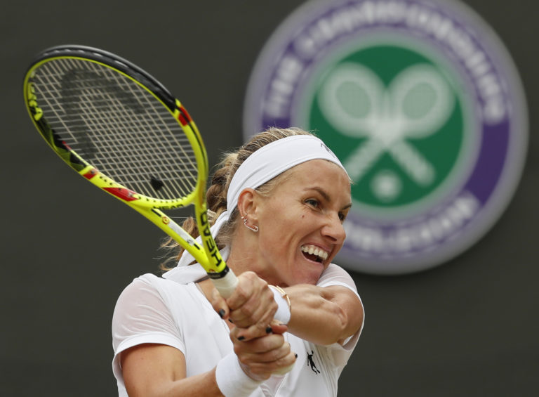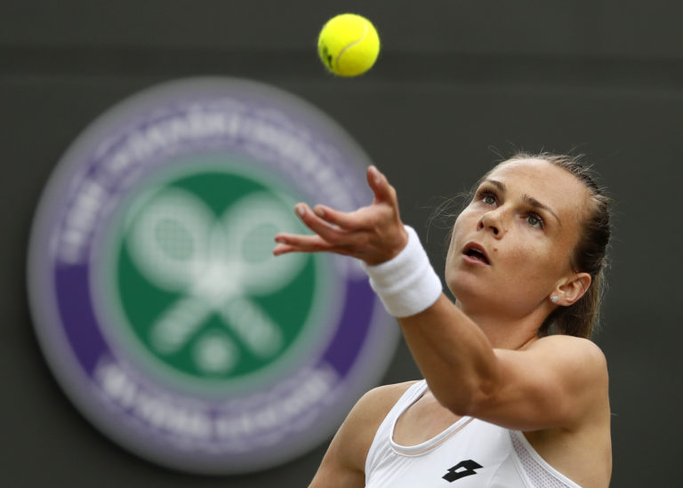 Slovenská tenistka Magdaléna Rybáriková vo štvrťfinále Wimbledonu proti Coco Vandeweghovej. 11. júl 2017 Foto: SITA/AP