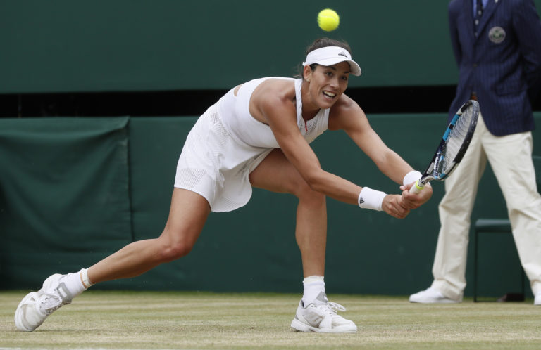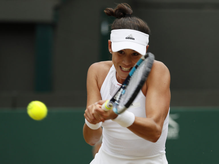 Španielska tenistka Garbine Muguruzová-Blancová počas štvrťfinálového zápasu na Wimbledone, v ktorom zdolala Rusku Svetlanu Kuznecovovú 6:3, 6:4. Londýn, 11. júl 2017. Foto: SITA/AP.