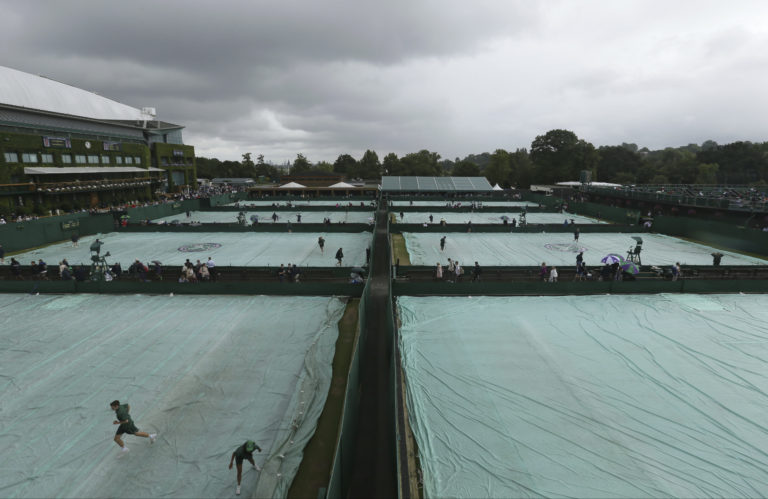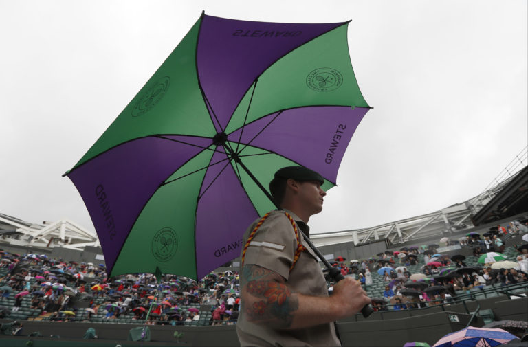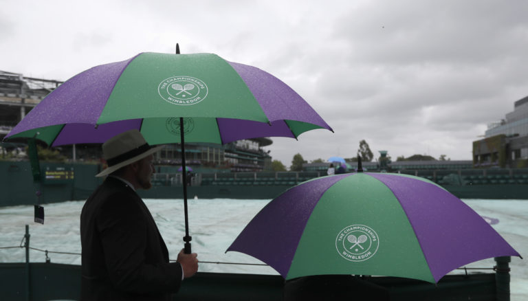 Utorkový program na Wimbledone narušil dážď. Londýn, 11. júl 2017. Foto: SITA/AP.