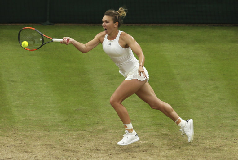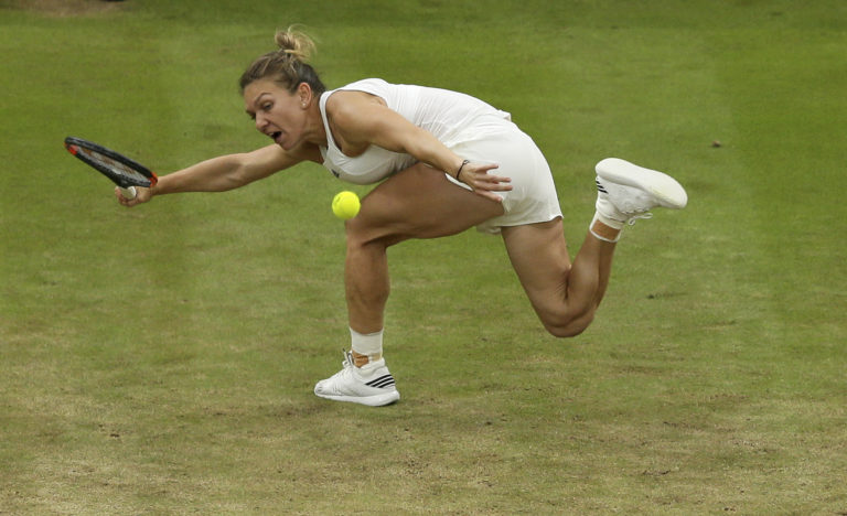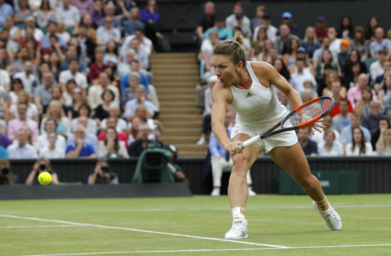 Rumunská tenistka Simona Halepová počas štvrťfinálového zápasu na Wimbledone, v ktorom podľahla Britke Johanne Kontovej 6:7 (2), 7:6: (5), 6:4. Londýn, 11. júl 2017. Foto: SITA/AP.