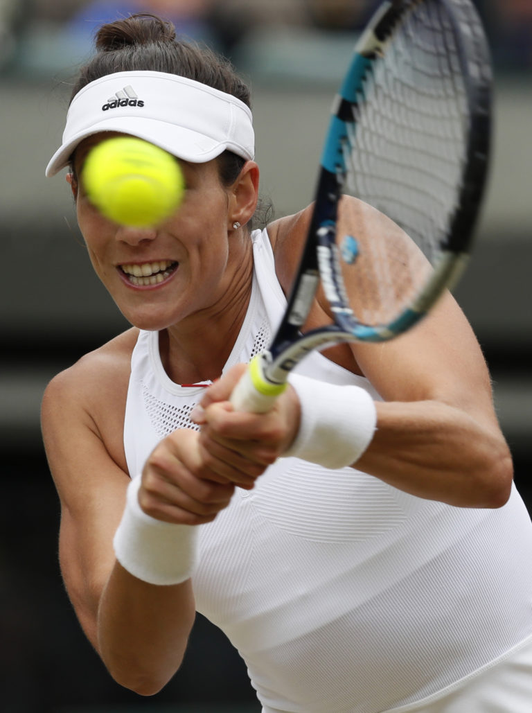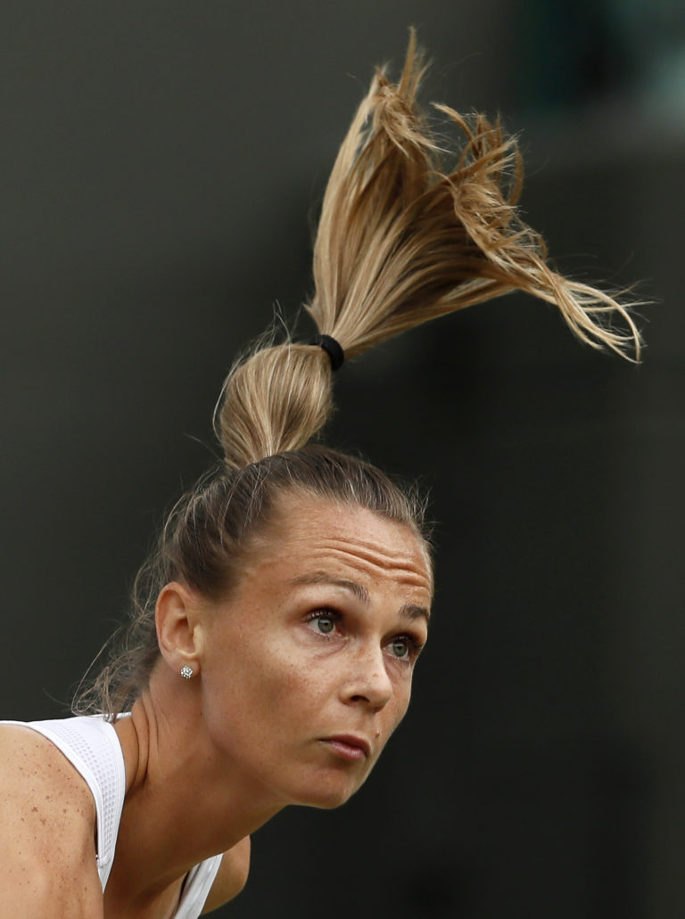 Ruska Svetlana Kuznecovova v zápase štvrťfinále proti Španielke Muguruzovej, proti ktorej prehrala 6:3, 6:4. 11. júl 2017 Foto: SITA/AP