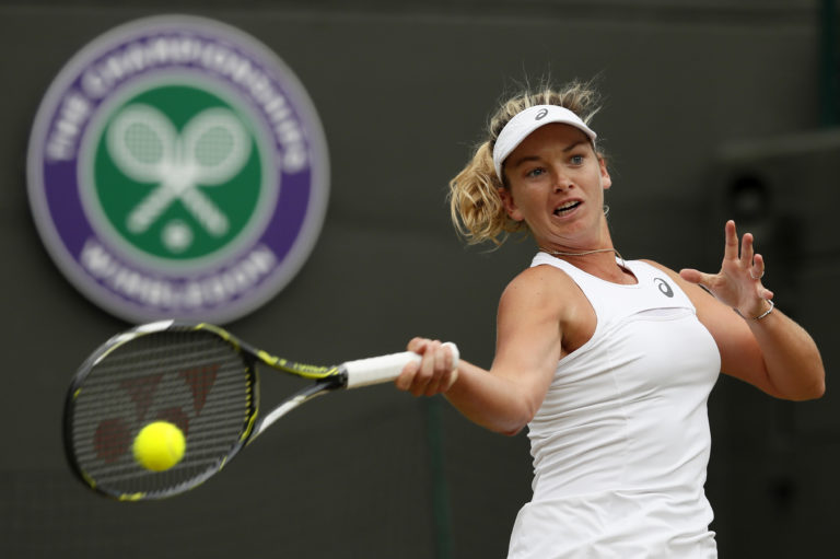Americká tenistka Coco Vanderweghová v zápase štvrťfinále Wimbledonu proti Slovenke Magdaléne Rybárikovej. 11. júl 2017 Foto: SITA/AP