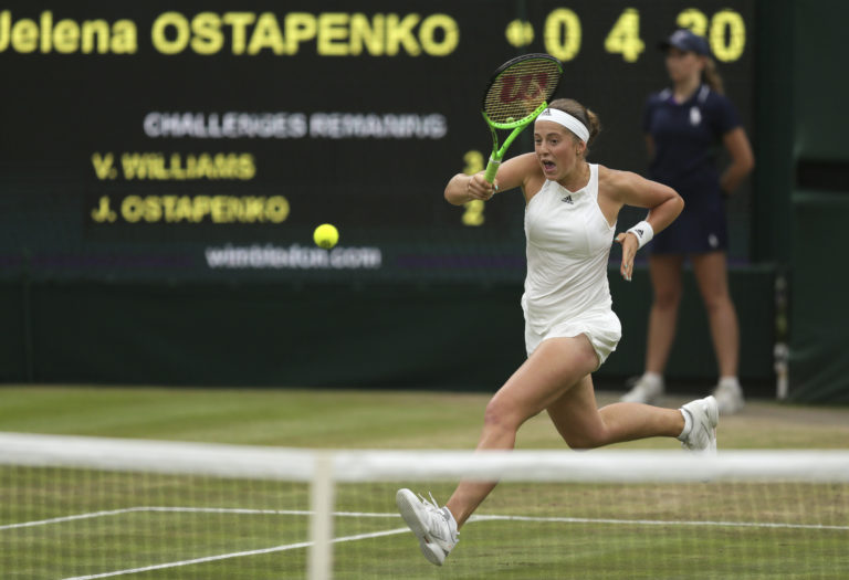 Lotyšská tenistka Jelena Ostapenková počas štvrťfinálového zápasu na Wimbledone, v ktorom podľahla Američanke Venus Williamsovej 3:6, 5:7. Londýn, 11. júl 2017. Foto: SITA/AP.