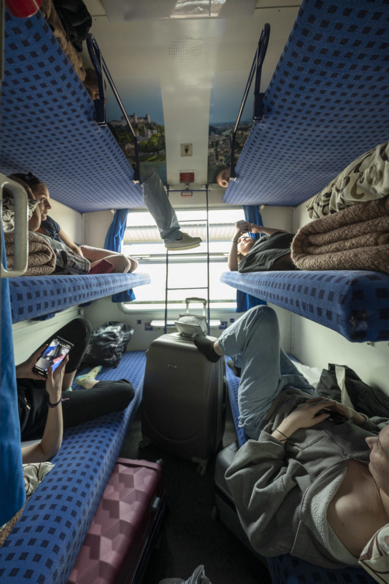 Atmosféra vo vlaku EuroNight počas tlačovej konferencie Železničnej spoločnosti Slovensko (ZSSK) pri príležitosti prvej tohtoročnej jazdy sezónneho vlaku EuroNight z Bratislavy do chorvátskeho Splitu. Bratislava, 3. máj 2024. Foto: archívne, SITA/Milan Illík.