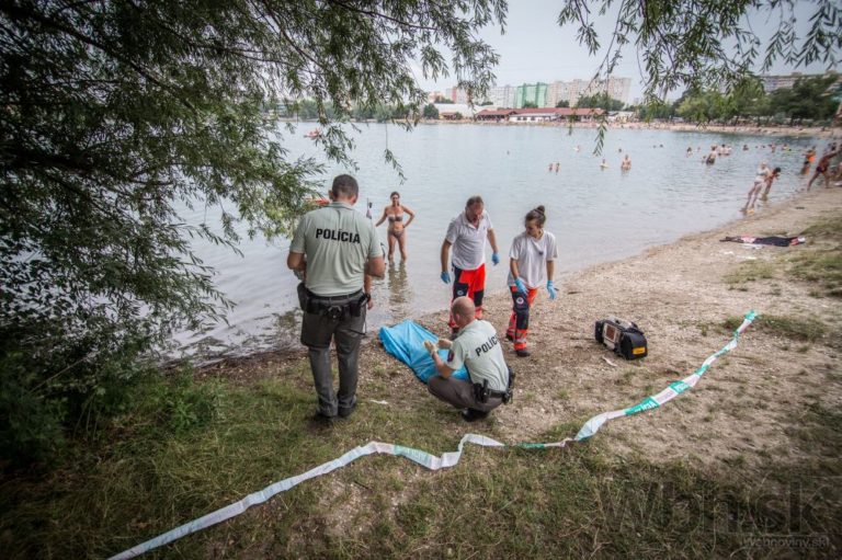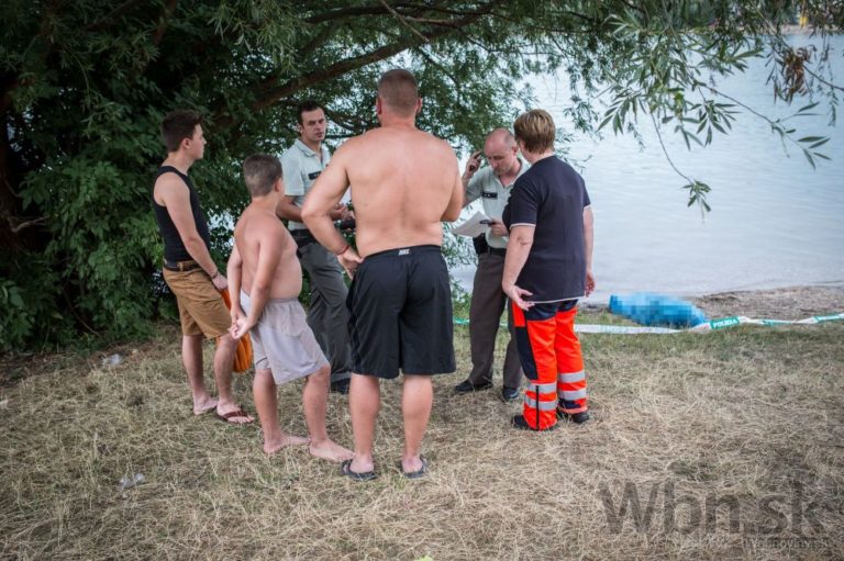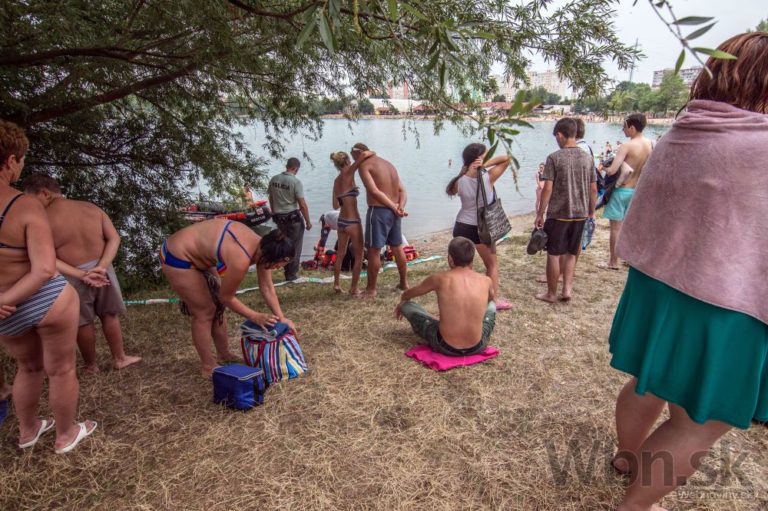 Okolostojaci po neúspešnom oživovaní utopenej ženy pri prírodnom jazere Veľký Draždiak. Bratislava, 7. júl 2015. Foto: SITA/Marko Erd