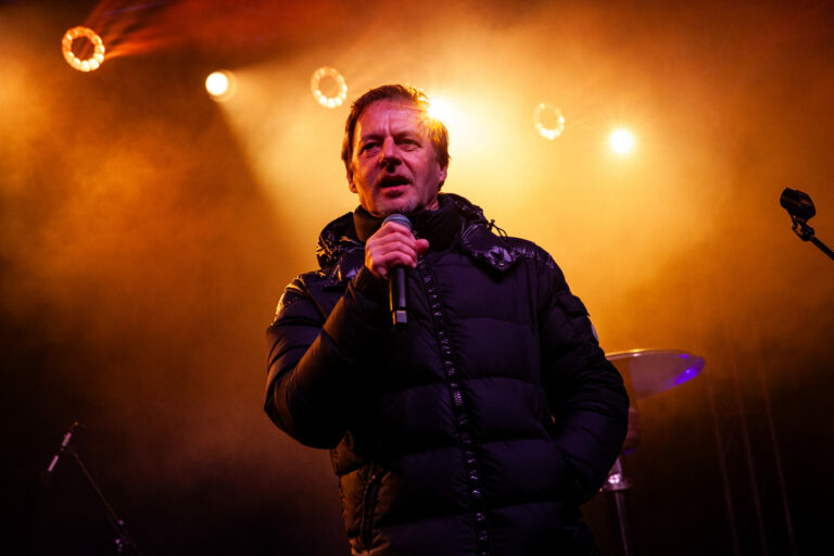 Spevák Pavol Habera počas koncertu spojeného s protestným zhromaždením pod názvom Za budúcnosť kultúry oragnizovaným občianskou iniciatívou Otvorená kultúra! na Námestí slobody v Bratislave. Bratislava, 12. december 2024. Foto: SITA/Tomáš Bokor