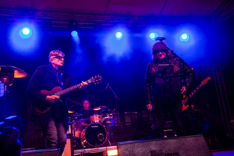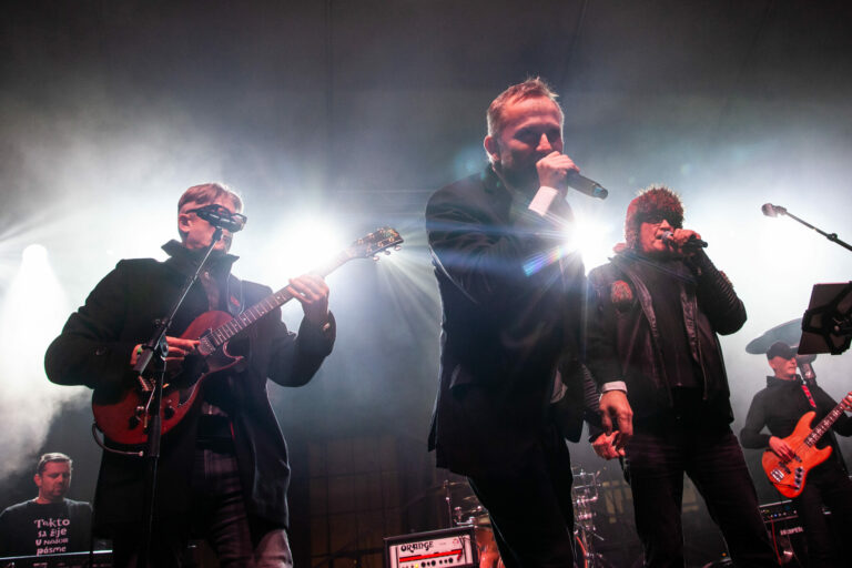 Hudobná skupina Karpatské chrbáty počas koncertu spojeného s protestným zhromaždením pod názvom Za budúcnosť kultúry oragnizovaným občianskou iniciatívou Otvorená kultúra! na Námestí slobody v Bratislave. Bratislava, 12. december 2024. Foto: SITA/Tomáš Bokor