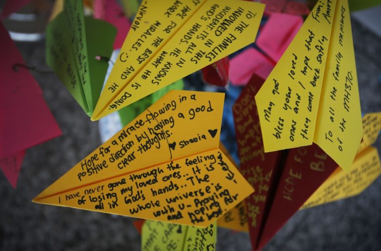 Lietadlo spoločnosti Malaysia Airlines zmizlo bez stopy v sobotu 8. marca. Za jeho nájdenie sa modlí celý svet. Odkazy pribúdajú na letisku v Kuala Lumpure.
