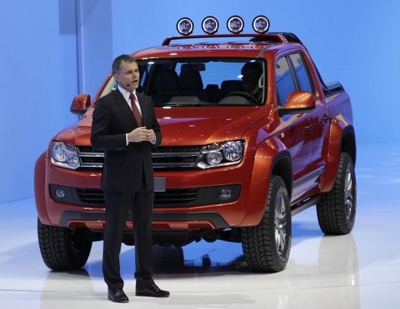 Výkonný riaditeľ Volkswagenu Martin Winterkorn pózuje pri Cross Coupe. Foto: SITA/AP
