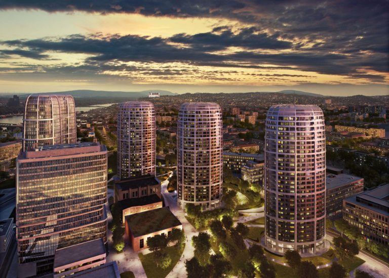 Vizualizácia projektu Sky Park, ktorý vyrastie na území bývalej industriálnej zóny Čulenova podľa projektu architektky Zahy Hadid. Bratislava, 19. máj 2017. Foto: SITA/Penta Investments