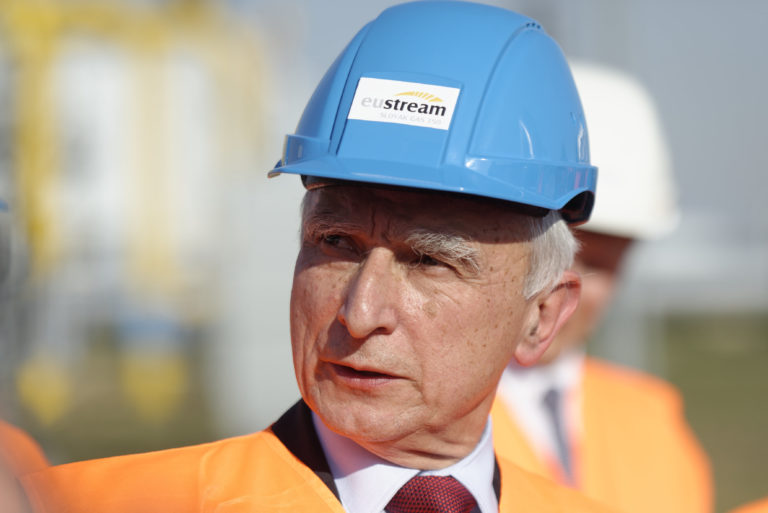 Splnomocnenec vlády Poľskej republiky pre strategickú energetickú infraštruktúru Piotr Naimski počas slávnostného začatia výstavby Prepojovacieho plynovodu Poľsko - Slovensko v priestoroch kompresorovej stanice vo Veľkých Kapušanoch. Veľké Kapušany, 18. september 2018. Foto: SITA/Ivan Fleischer
