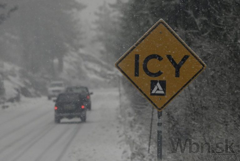 Značka varujúca vodičov o stave vozovky na Donner Pass Road neďaleko Soda Springs v Kalifornii. Foto: SITA/AP