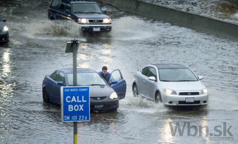 Prudká búrka spôsobila problém v doprave aj na úsek diaľnice 101 v južnom San Franciscu. Foto: SITA/AP