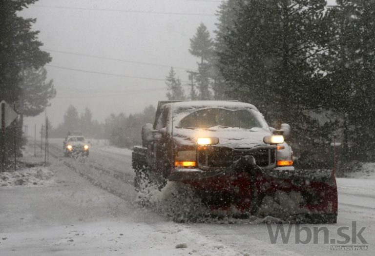 Snehom zaviate cesty v blízkosti Soda Springs v Kalifornii. Foto: SITA/AP