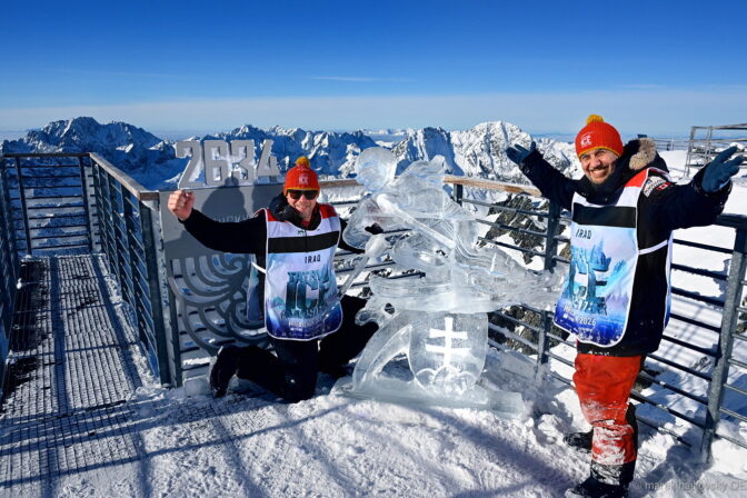 Zľava: Hráči Dukly Trenčín Dávid Buc a Tomáš Troliga sa radujú z gólu počas hokejového zápasu 44. kola Tipsport extraligy medzi Dukla Trenčín a MHC Mountfield Martin. Foto: SITA/Tomáš Somr