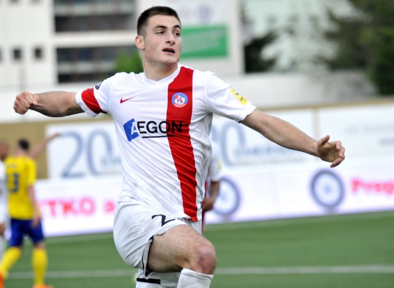 Hráč AS Trenčín Matúš Bero sa teší z gólu na 1:0 počas 28. kola jarnej časti Fortuna ligy 2014/2015. Trenčín, 5. máj 2015. Foto: SITA/Tomáš Somr