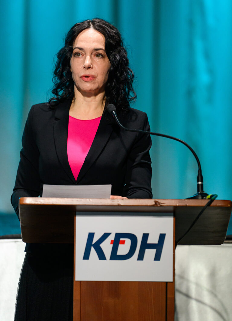 Europoslankyňa za KDH Miriam Lexmann počas zasadnutia celoslovenskej Rady Kresťanskodemokratického hnutia v Nitre. Nitra, 15. február 2024. Foto: SITA/Martin Havran.