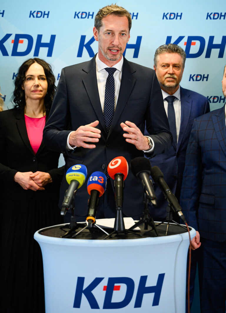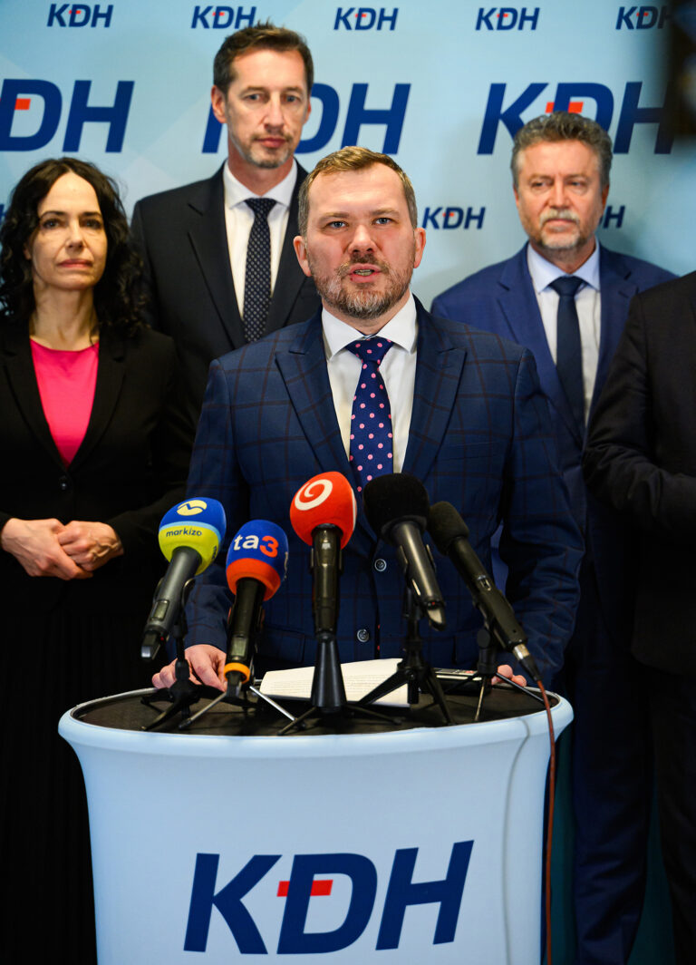 Predseda KDH Milan Majerský (uprostred). Foto: archívne, SITA/Martin Havran.