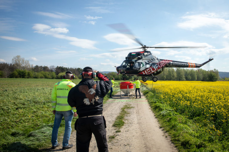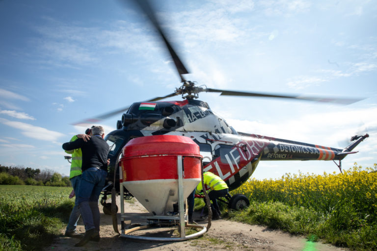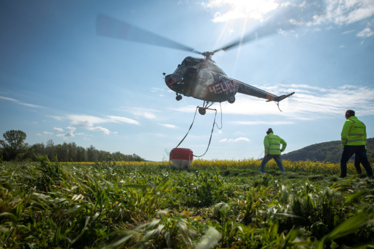 Špeciálny zásah, počas ktorého sa aplikoval larvicíd BTI z helikoptéry v území Devínskej Novej Vsi pozdĺž rieky Moravy. Bratislava, 27. apríl 2023. Foto: SITA/Diana Černáková