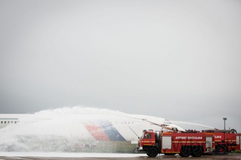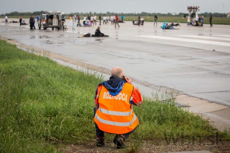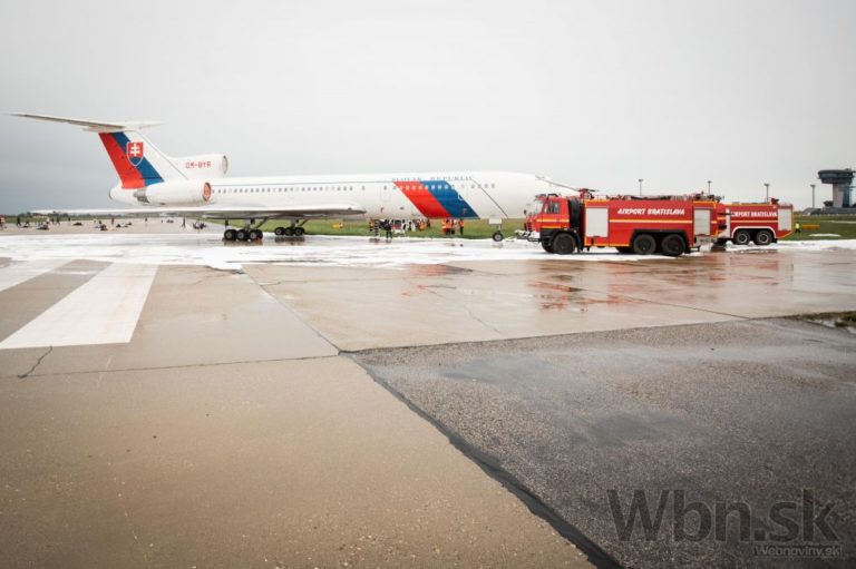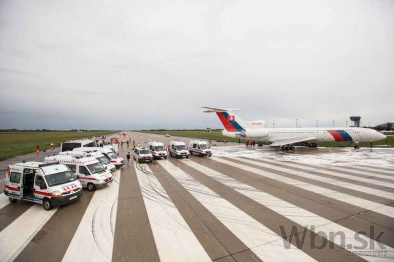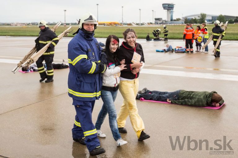 Pohľad na cvičenie zložiek integrovaného záchranného systému (hasiči, rýchla zdravotná služba, polícia) na Letisku M. R. Štefánika, kde bola nasimulovaná letecká nehoda so 189 cestujúcimi. Foto: SITA/Jozef Jakubčo