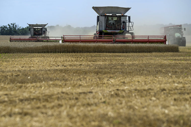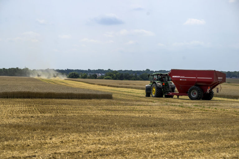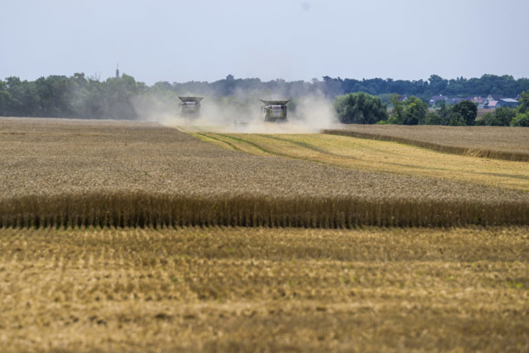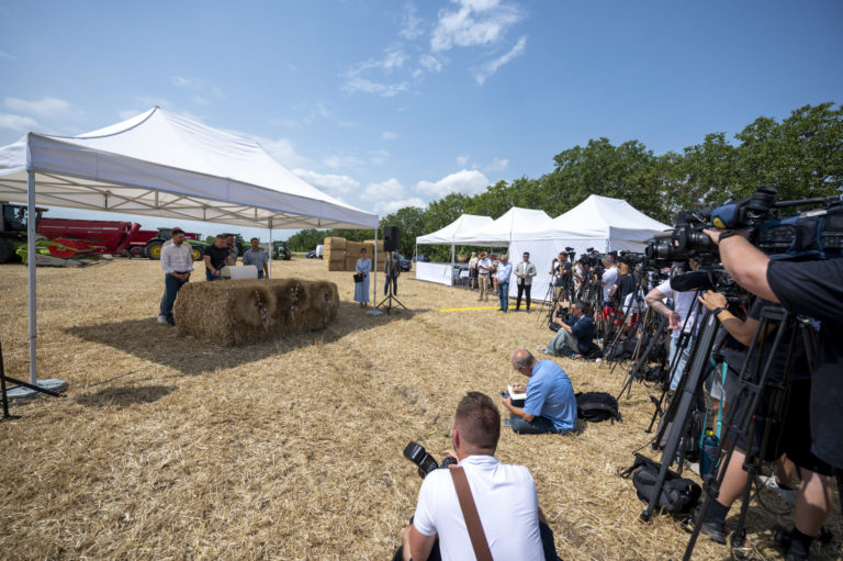 Atmosféra počas Žatevného dňa 2024 a tlačového brífingu so zástupcami Slovenskej poľnohospodárskej a potravinárskej komory (SPPK) a miestnymi farmármi z Poľnohospodárskeho družstva Agro Voderady. Slovenská Nová Ves, 8. júl 2024. Foto: SITA/Milan Illík