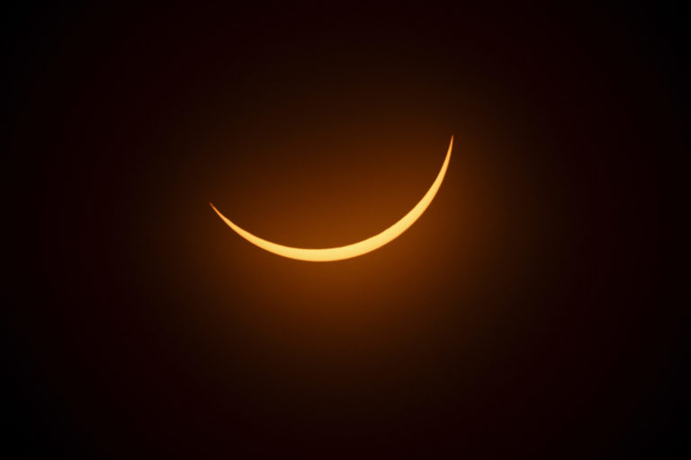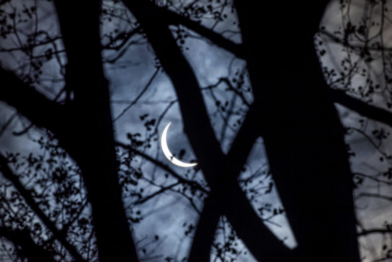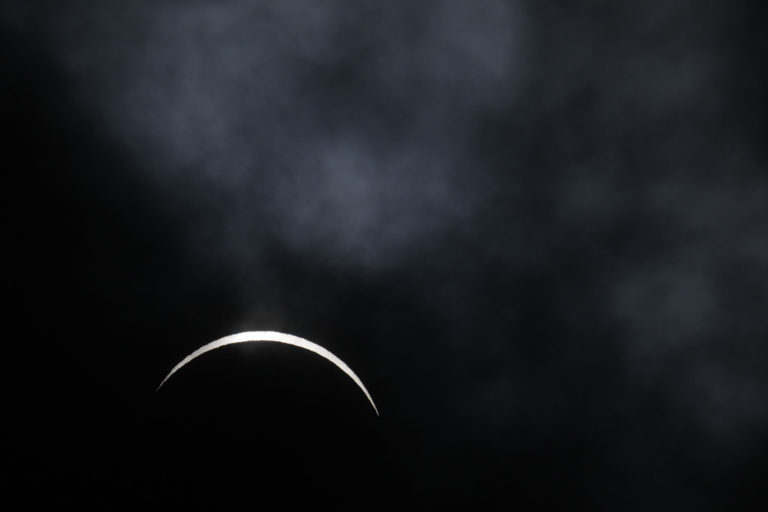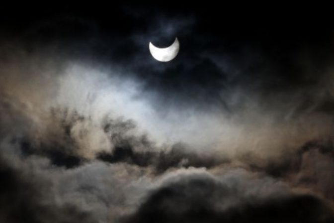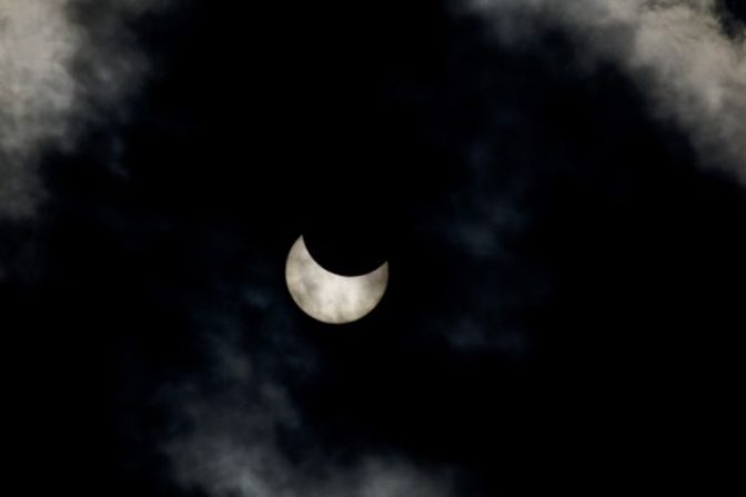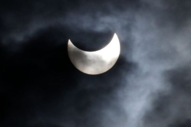 Mesiac čiastočne zakrýva Slnko počas úplného zatmenia Slnka. Foto: SITA/AP