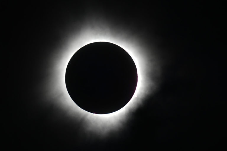 Mesiac zakrýva Slnko počas úplného zatmenia Slnka, pohľad z Fort Worthu v Texase. Foto: SITA/AP