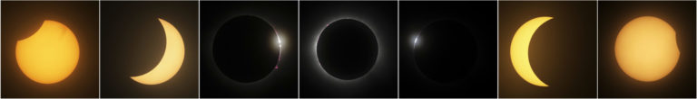 Kombinácia fotografií zobrazuje dráhu Mesiaca sprava doľava počas úplného zatmenia Slnka z Mazatlanu v Mexiku. Foto: SITA/AP