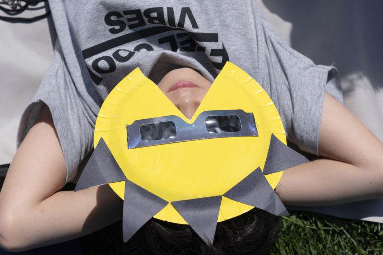 Muž s ochrannými okuliarmi počas úplného zatmenia Slnkavo Washingtone, pondelok 8. apríla 2024. Foto: SITA/AP