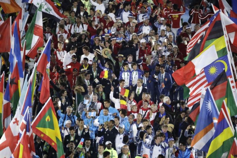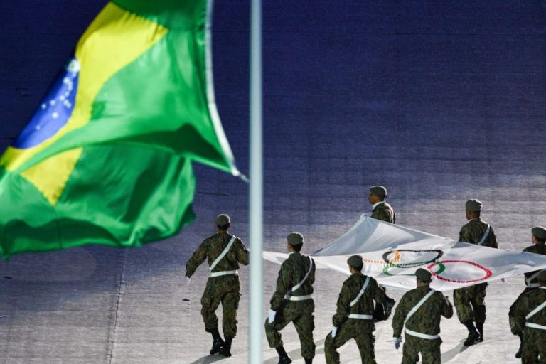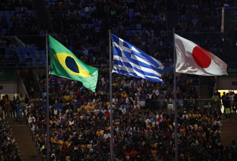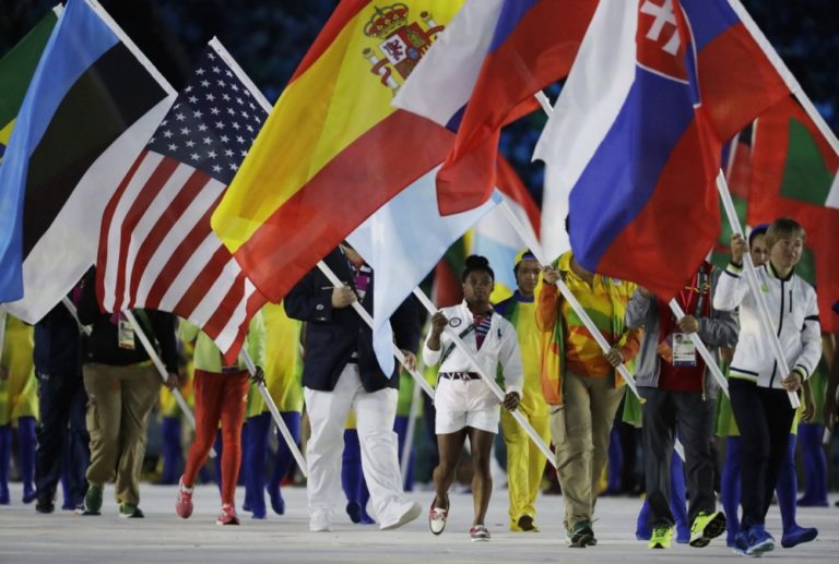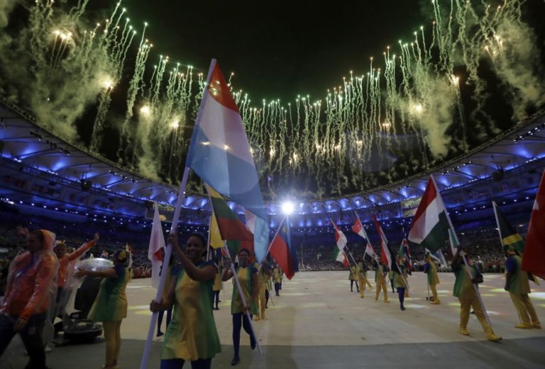 Vlajkonosiči počas záverečného ceremoniálu. Rio de Janeiro, 22. august 2016. Foto: SITA/AP
