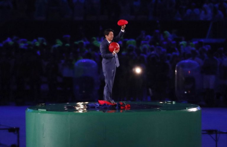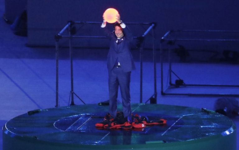 Japonský premiér Šinzo Abe počas záverečného ceremoniálu. Rio de Janeiro, 21. august 2016. Foto: SITA/AP