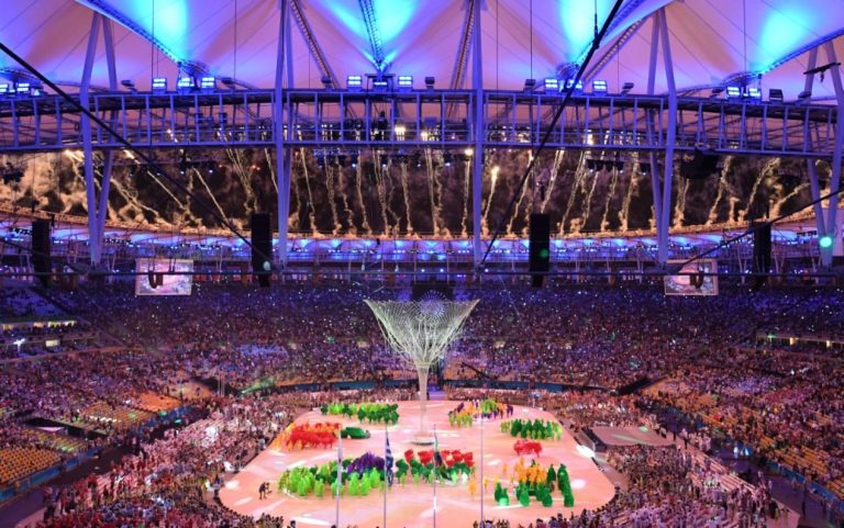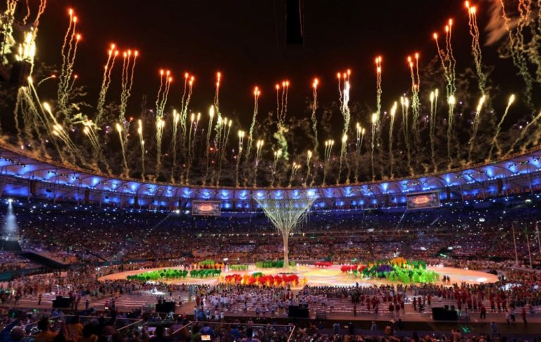 Na ploche štadióna Maracana v závere záverečného ceremoniálu vyrástol symbolický strom. Rio de Janeiro, 21. august 2016. Foto: SITA/AP