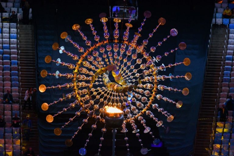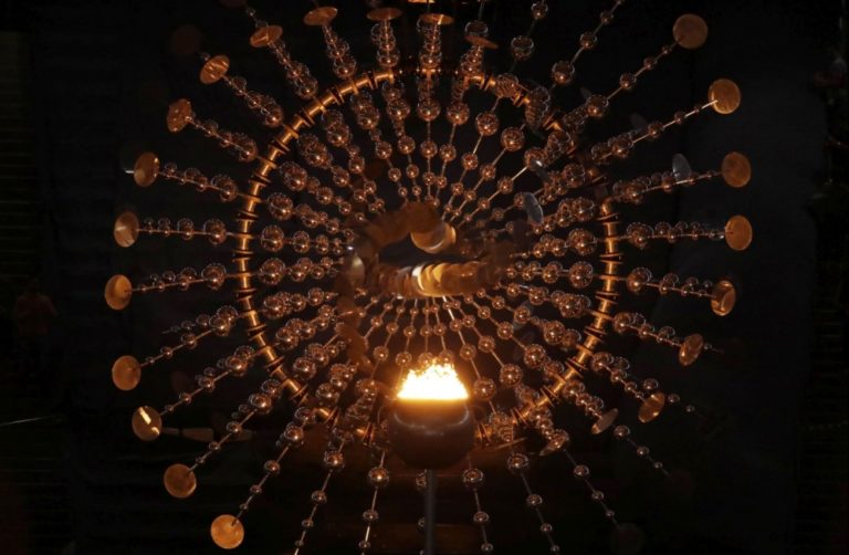 Zapálenie čaše s olympijským ohňom pred záverečným ceremoniálom. Rio de Janeiro, 21.august 2016. Foto: SITA/AP