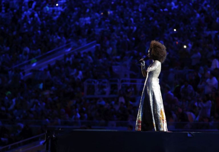 Mariene de Castro spieva pri zhasnutí olympijského ohňa počas záverečného ceremoniálu Hier XXXI. olympiády. Rio de Janeiro, 21. august 2016. Foto: SITA/Martin Medňanský