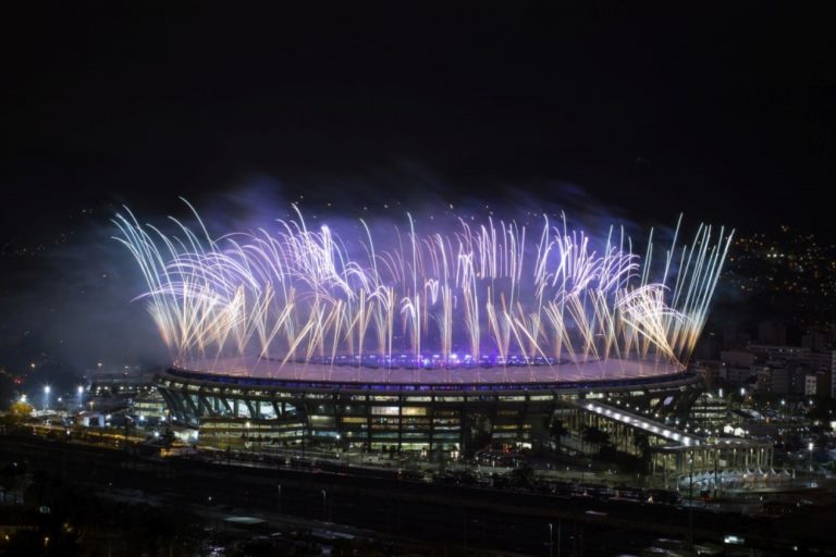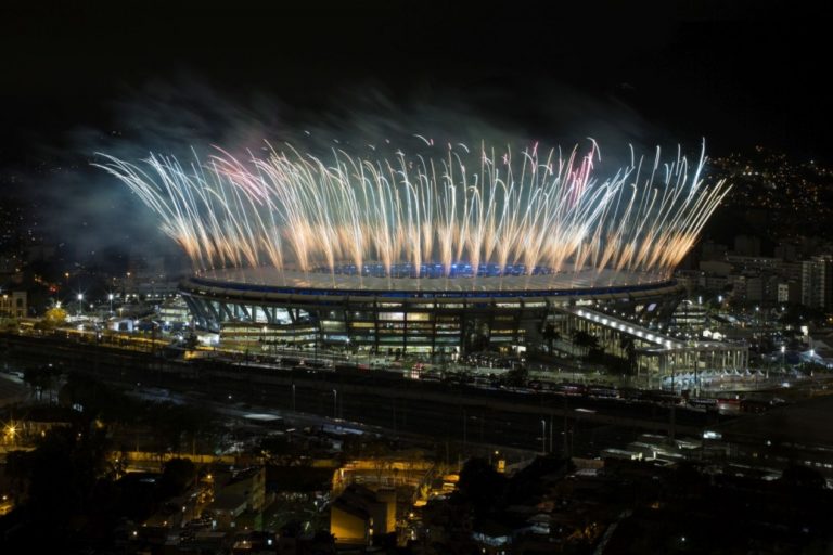 Ohňostroj počas záverečného ceremoniálu Hier XXXI. olympiády. Rio de Janeiro, 21. august 2016. Foto: SITA/AP