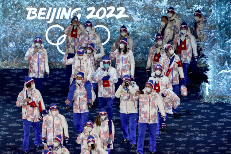Česi počas otváracieho ceremoniálu ZOH 2022. Peking, 4. február 2022. Foto: SITA/AP
