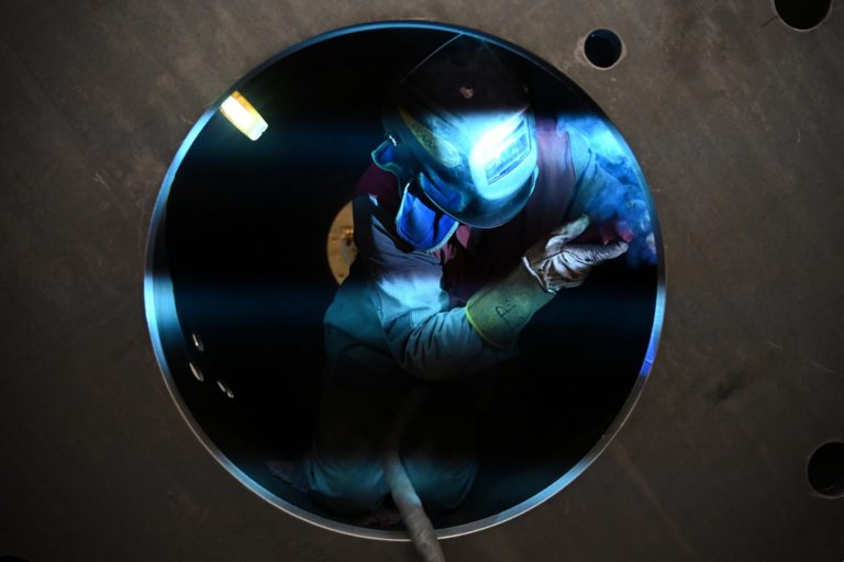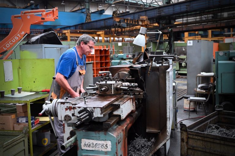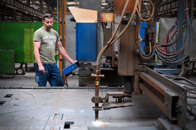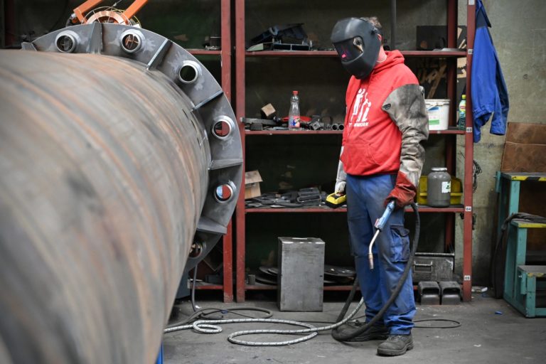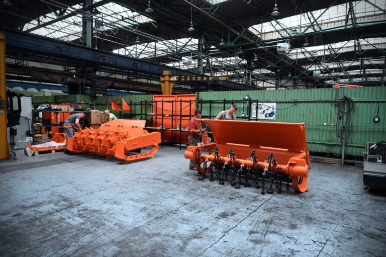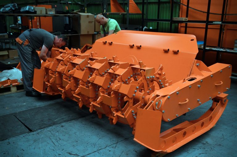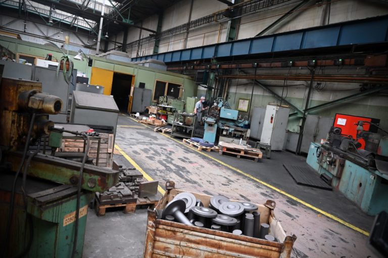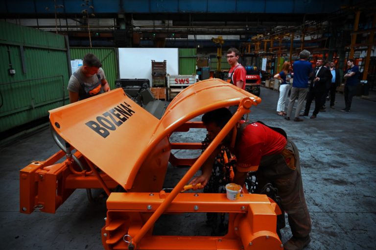 Výrobná hala spoločnosti Way industries počas tlačovej besedy iniciatívy Mier Ukrajine v sídle výrobcu Way industries v Krupine na tému: Zbierka na Boženu dosiahla dôležitý míľnik - slovenský odmínovač pre Ukrajinu ide do výroby. Krupina, 4. júl 2023. Foto: SITA/Jakub Julény