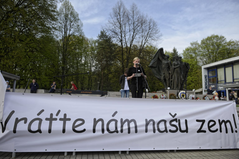 Zlatica Kunírová, matka zavradenej Martiny, poèas obèianskeho zhromadenia Za sluné Slovensko, organizované v súvislosti s vývojom spoloèenskej situácie po vrade novinára Jána Kuciaka a jeho snúbenice Martiny Kunírovej, v Humennom. Humenné, 15. apríl 2018. Foto: SITA/Ivan Fleischer Foto: SITA/Ivan Fleischer.