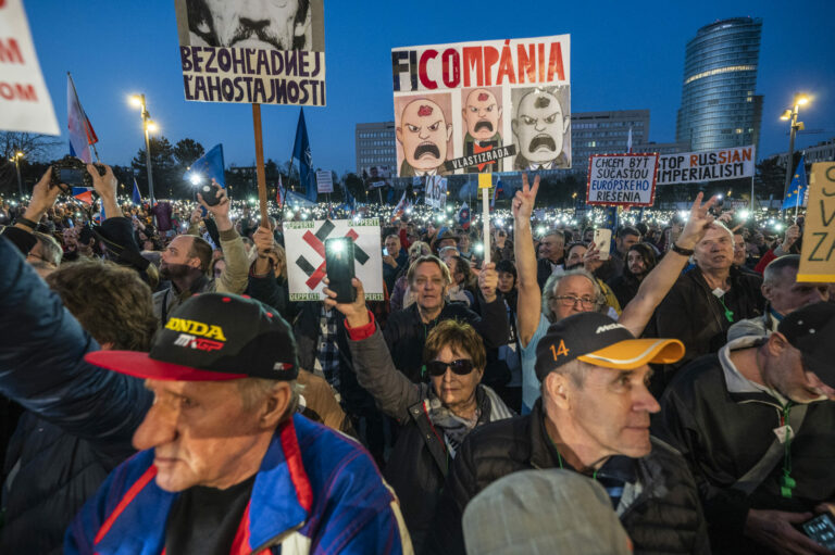 Transparent počas protestného zhromaždenia Slovensko je Európa v Košiciach. Zdroj: SITA/Katarína Lörincová