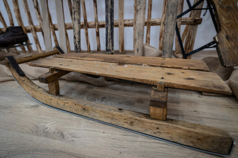 Historické sánky a korčule počas výstavy Zima na saniach v Kysuckom múzeu v Čadci. Čadca, 16. december 2024. Foto: SITA/Jana Birošová