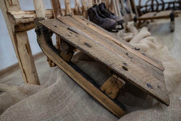 Historické sánky počas výstavy Zima na saniach v Kysuckom múzeu v Čadci. Čadca, 16. december 2024. Foto: SITA/Jana Birošová