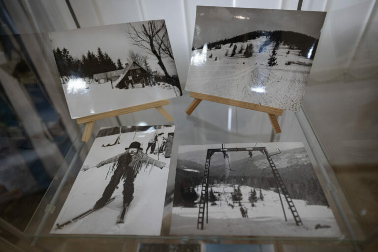 Dobové fotografie počas výstavy Zima na saniach v Kysuckom múzeu v Čadci. Čadca, 16. december 2024. Foto: SITA/Jana Birošová