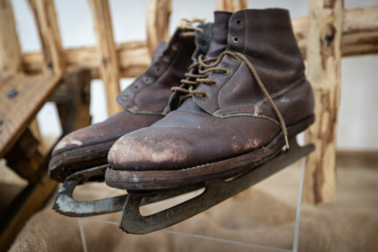 Historické korčule počas výstavy Zima na saniach v Kysuckom múzeu v Čadci. Čadca, 16. december 2024. Foto: SITA/Jana Birošová