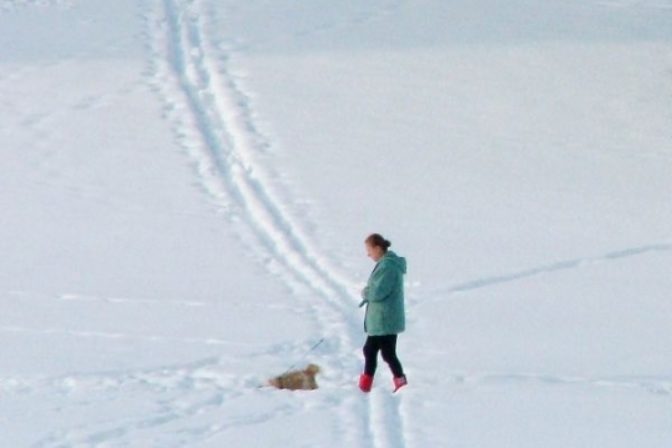 Ľudia v uliciach zasneženej Bratislavy. Foto: SITA/Diana Černáková
