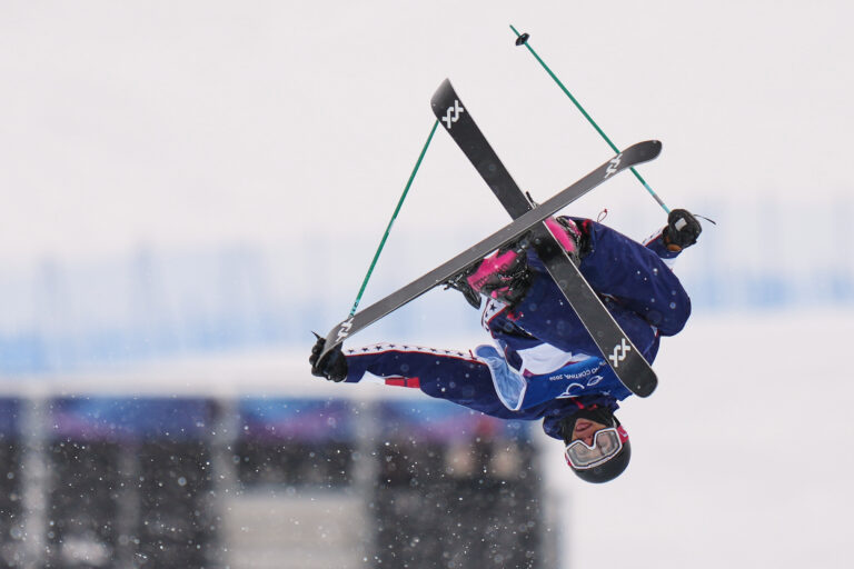 United States' Nick Goepper competes during the men's freestyle skiing halfpipe qualifications at the 2026 Winter Olympics, in Livigno, Italy, Friday, Feb. 20, 2026. Foto: SITA/AP