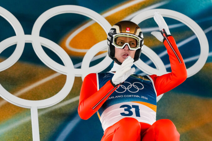 Gregor Deschwanden, of Switzerland, prepares for his trial jump of the ski jumping men's normal hill individual at the 2026 Winter Olympics, in Predazzo, Italy, Monday, Feb. 9, 2026. Foto: SITA/AP.