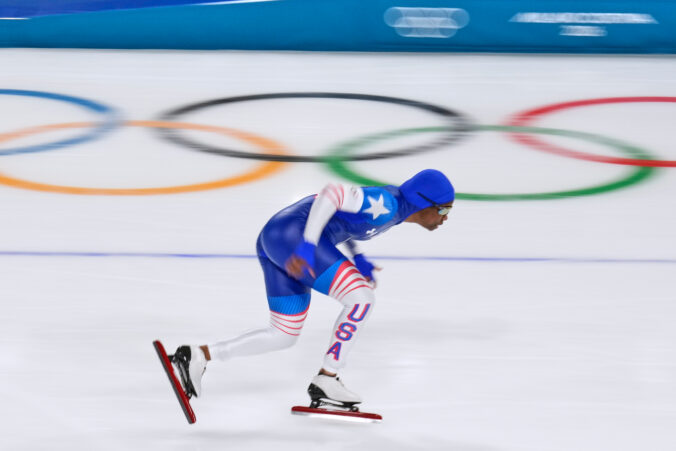 Erin Jackson of the U.S. competes in the women's 1,000 meters speedskating race at the 2026 Winter Olympics, in Milan, Italy, Monday, Feb. 9, 2026. Foto: SITA/AP.