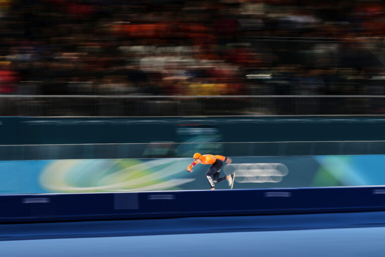 Jutta Leerdam of the Netherlands concentrates prior to the women's 1,000 meters speedskating race at the 2026 Winter Olympics, in Milan, Italy, Monday, Feb. 9, 2026. Foto: SITA/AP.